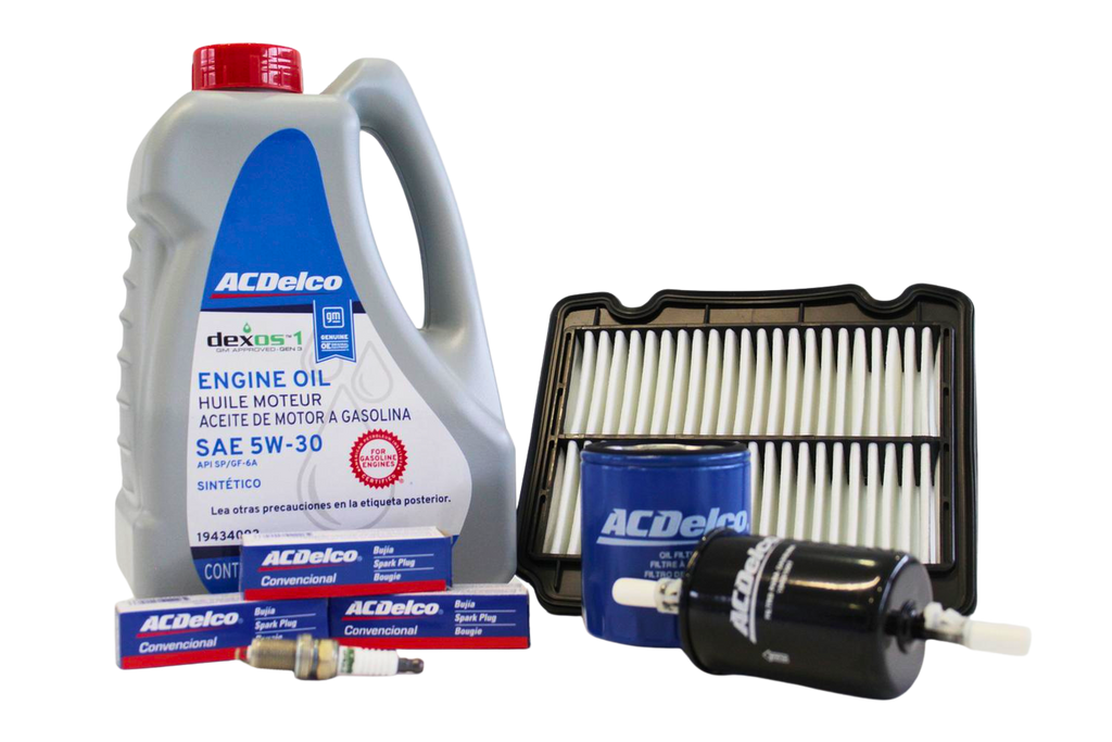 Kit de afinación original ACDELCO con aceite sintético 5W-30 diseñado para el mantenimiento preventivo del motor. Incluye componentes esenciales para el servicio de afinación, ayudando a mantener la lubricación óptima, mejorar el rendimiento del motor y prolongar su vida útil conforme a las especificaciones del fabricante.