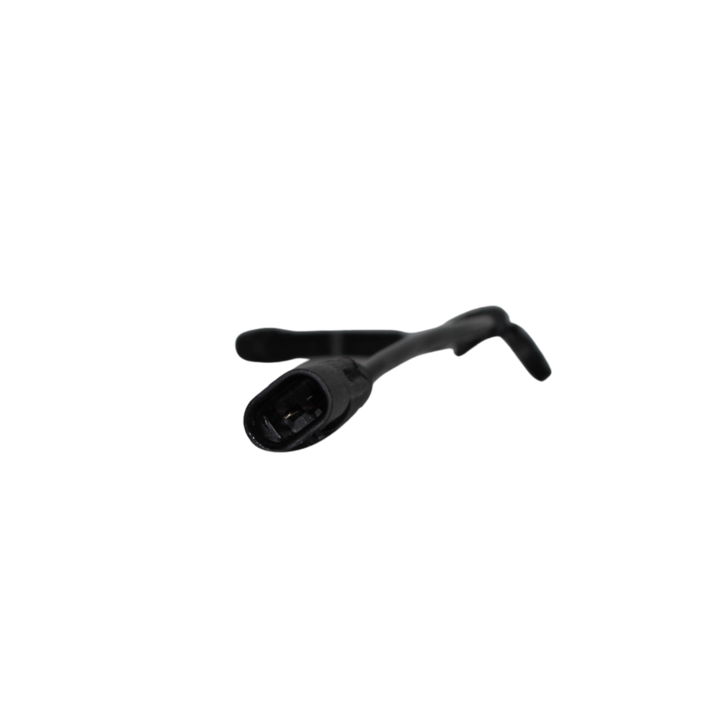 Sensor de desgaste de pastilla de freno delantera derecha. Detecta el nivel de desgaste de la pastilla y envía una señal al sistema del vehículo para alertar al conductor cuando es necesario el reemplazo, contribuyendo a la seguridad y mantenimiento oportuno.