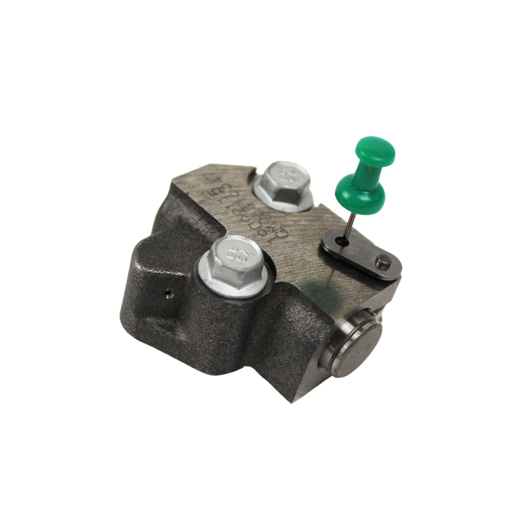 Tensor de la cadena de distribución encargado de mantener la tensión correcta de la cadena, asegurando la sincronización precisa entre el cigüeñal y el árbol de levas. Reduce vibraciones, ruidos y desgaste prematuro del sistema de distribución.